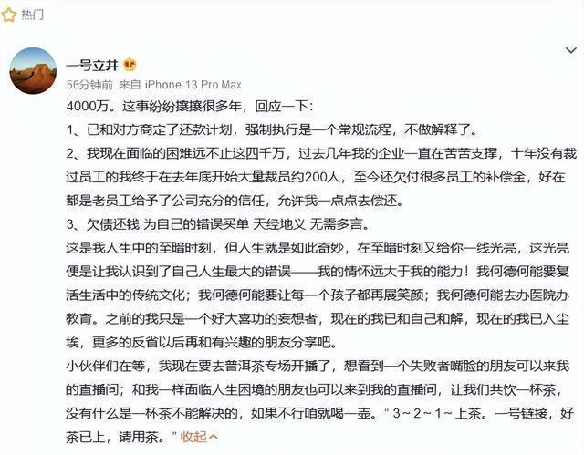 他也在网络中直言自己在红利期的时候也赚过个小目标,但是那都是曾经的辉煌了,后来的他欠债,还成为被执行人, 没想到就这样,还有人不离不弃地陪伴他。