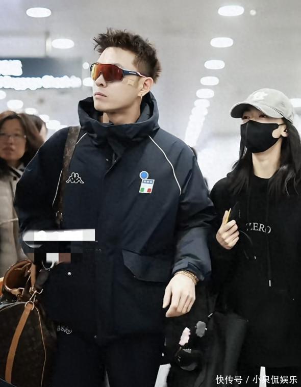 洪尧右脸颧骨处贴着醒目创可贴,疑似拍戏划伤。但这位曾被质疑"配不上顶流妻子"的演员,全程未让伤势影响行李搬运。有粉丝发现他推行李时特意用受伤侧脸避开人群,保护意识与担当精神并存。